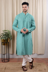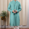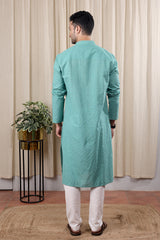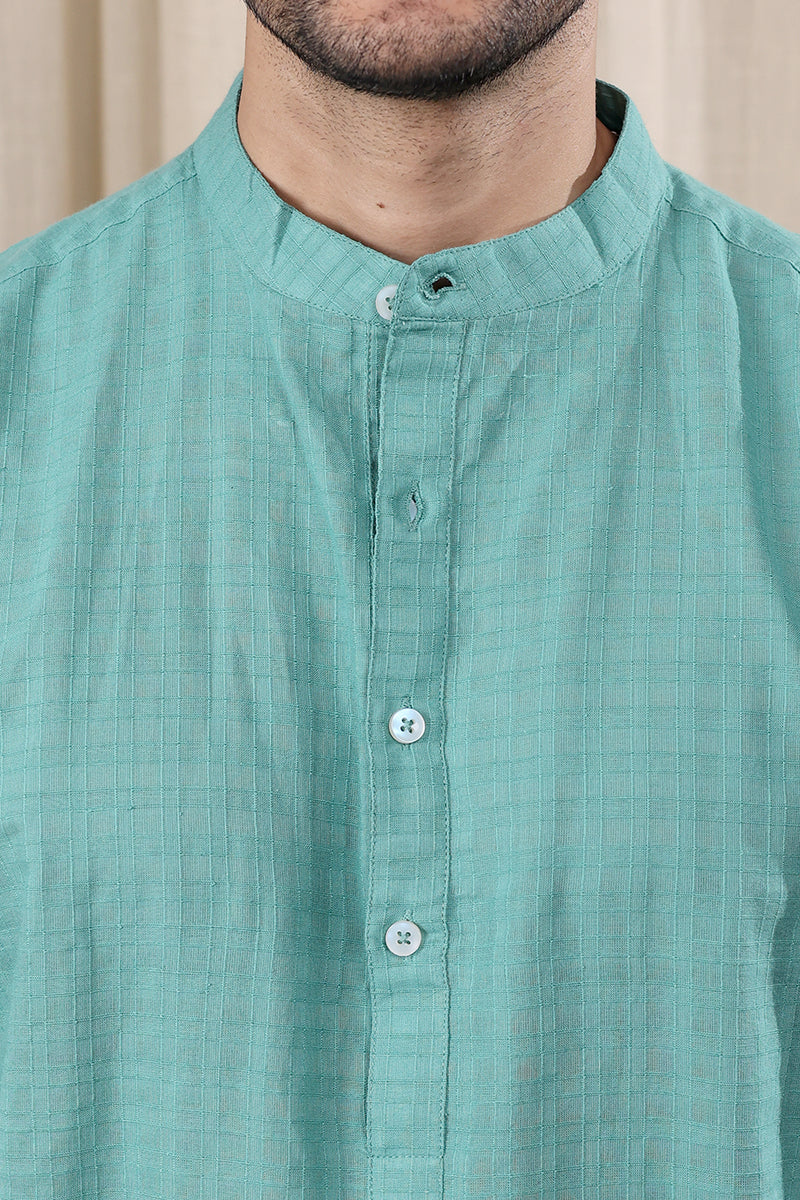 Sea Green Checks South Cotton Men Long Kurta Full Sleeves MLKFS252C25