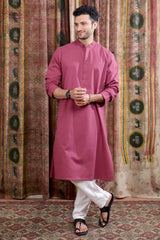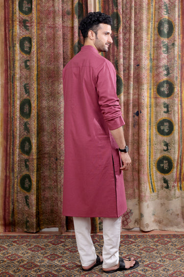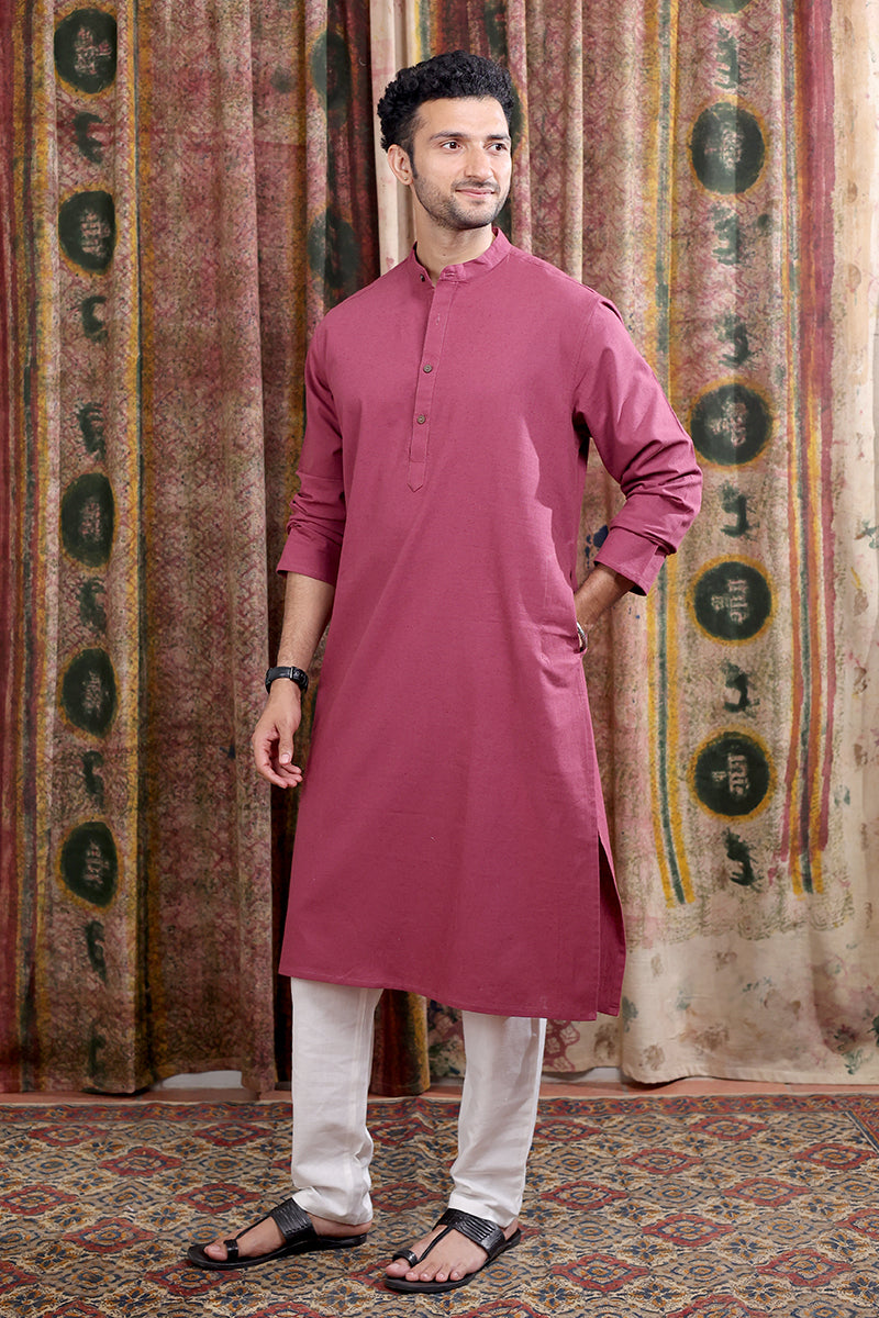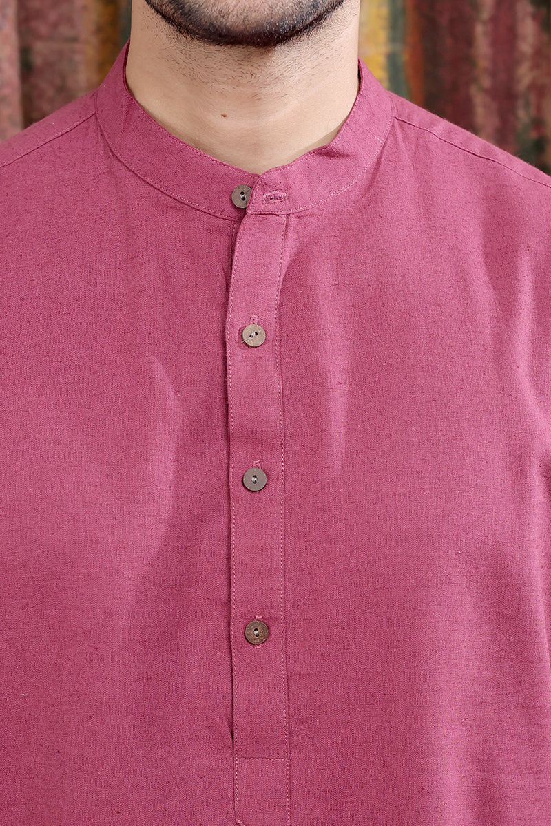 Wine Hand Dyed Cotton Linen Men Long Kurta Full Sleeves MLKFS253C47