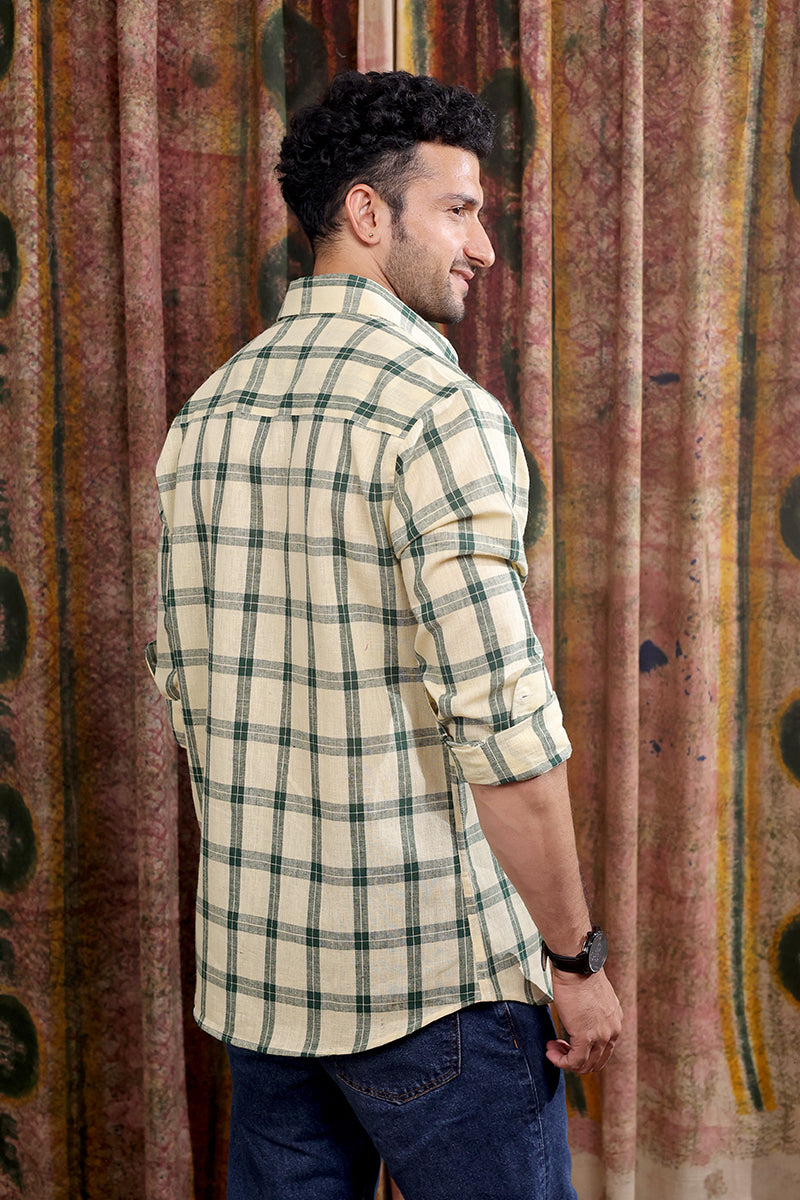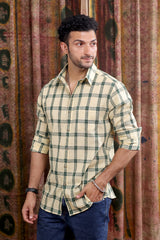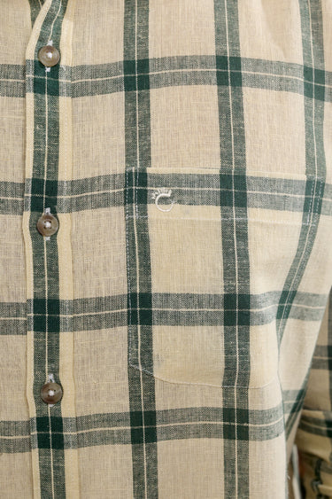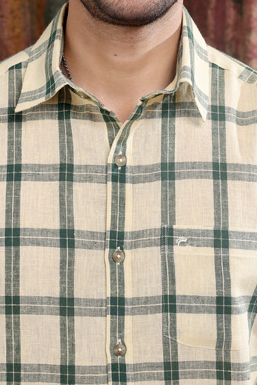Bottle Green Checks Cotton Linen Men Shirt Full Sleeves MSHFS253C5