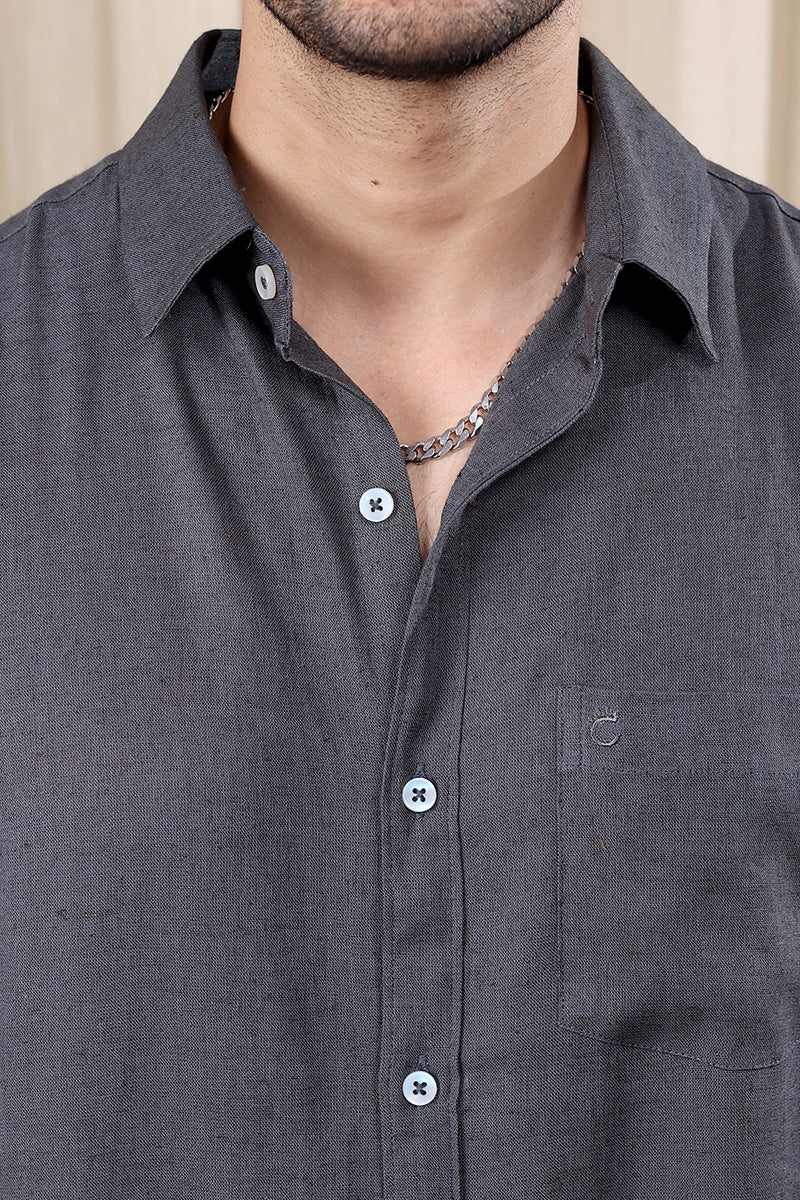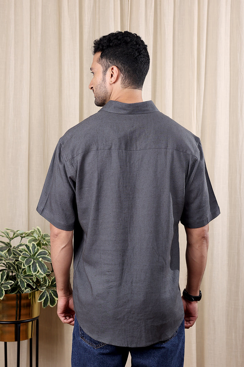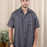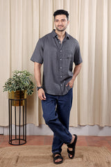 Charcoal Hand Dyed Rayon Flax Men Shirt Half Sleeves MSHHS252C38