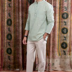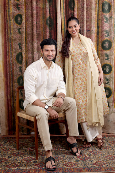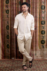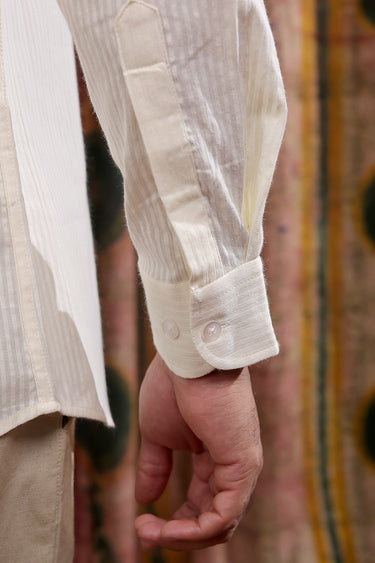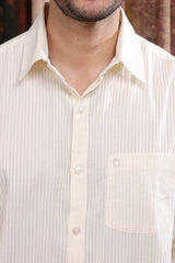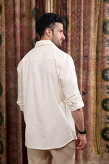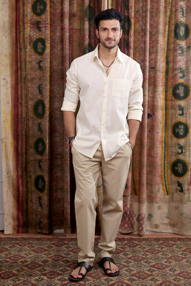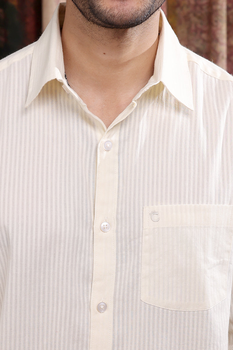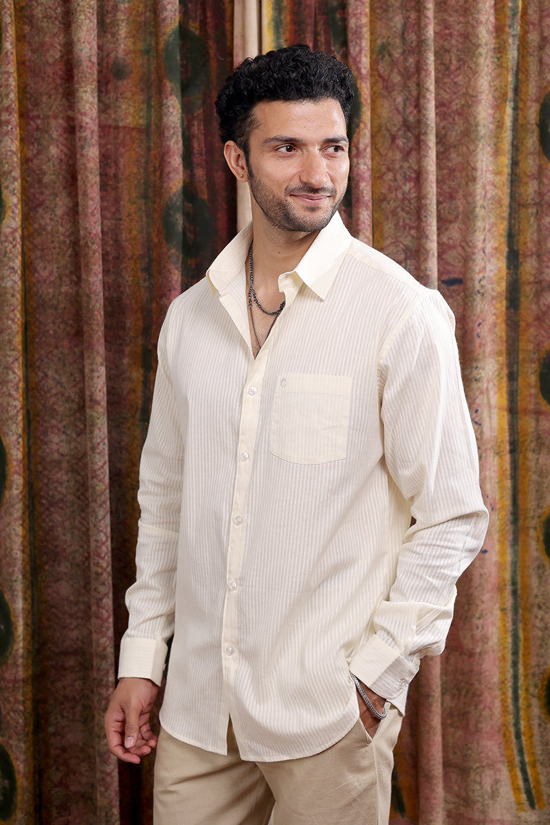 Ecru Hand Dyed Cotton Seer Sucker Men Shirt Full Sleeves MSHFS252C7