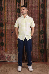 Green Sanganeri Cotton Flax Men Shirt Half Sleeves MSHHS251C27