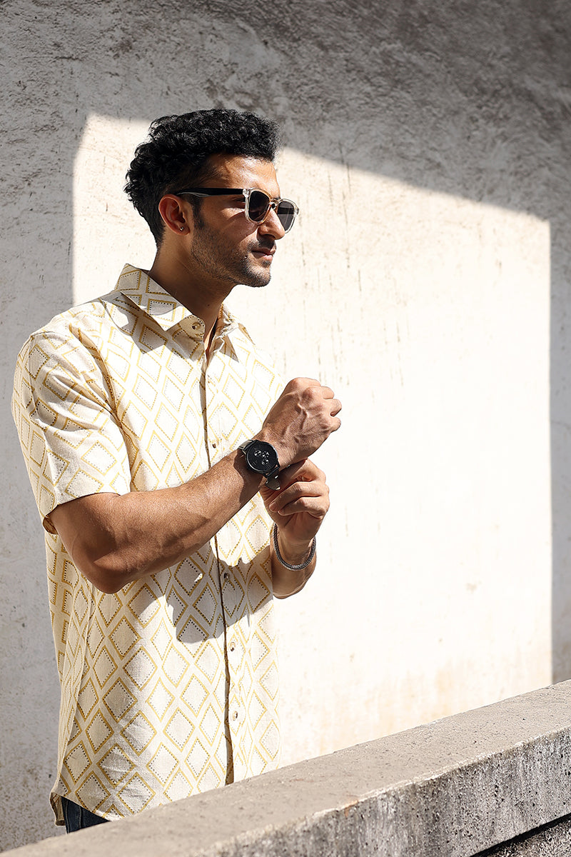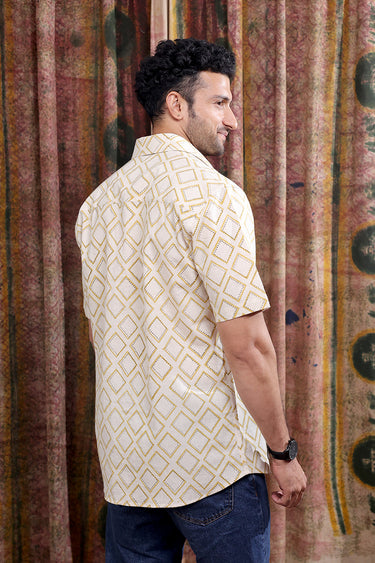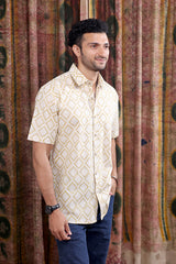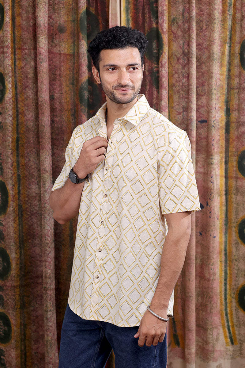 Mustard Sanganeri Cotton Linen Men Shirt Half Sleeves MSHHS252C52
