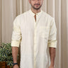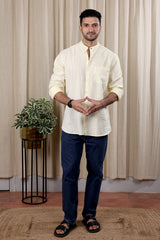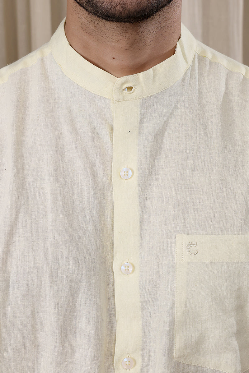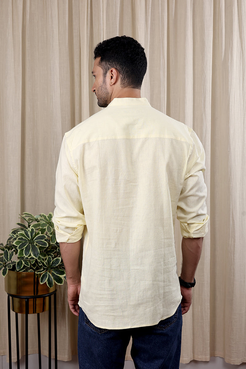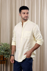 Pastel Yellow Hand Dyed Cotton Linen Men Shirt Full Sleeves MSHFS252C2