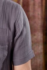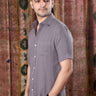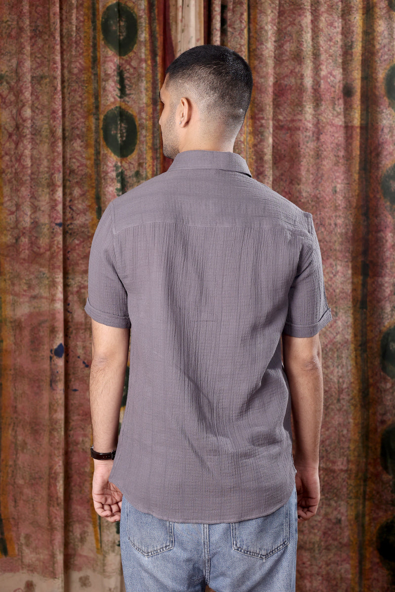 Steel Grey Hand Dyed Cotton Double Cloth Men Shirt Half Sleeves MSHHS251C24