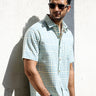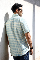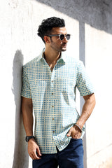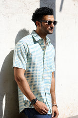 Teal Blue Sanganeri Cotton Linen Men Shirt Half Sleeves MSHHS253C3