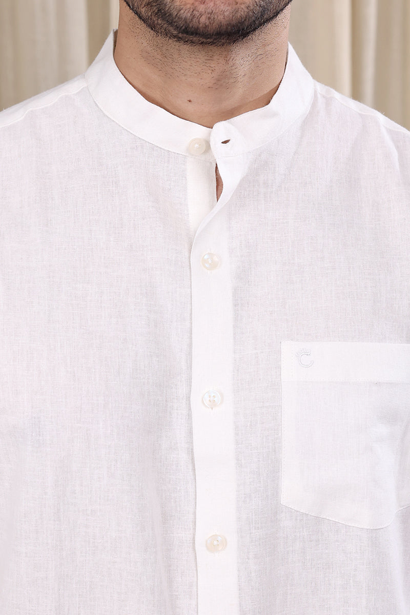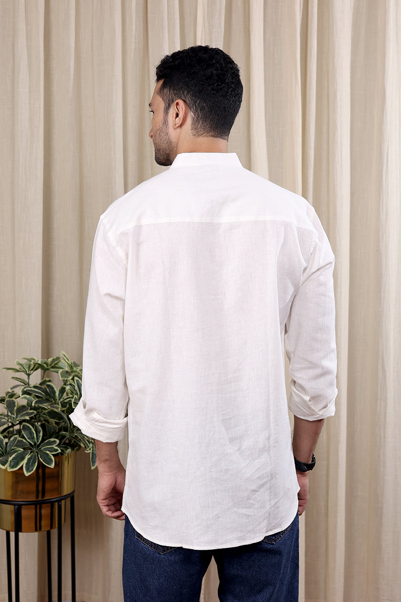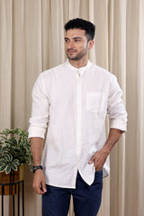 White Hand Dyed Cotton Linen Men Shirt Full Sleeves MSHFS252C6