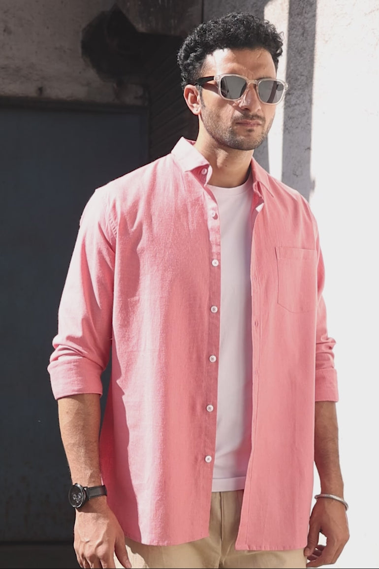 Rose Pink Hand Dyed Cotton Linen Men Shirt Full Sleeves MSHFS252C19