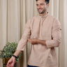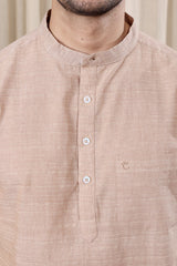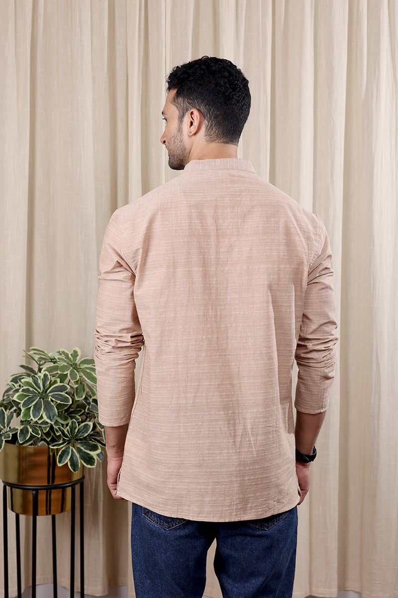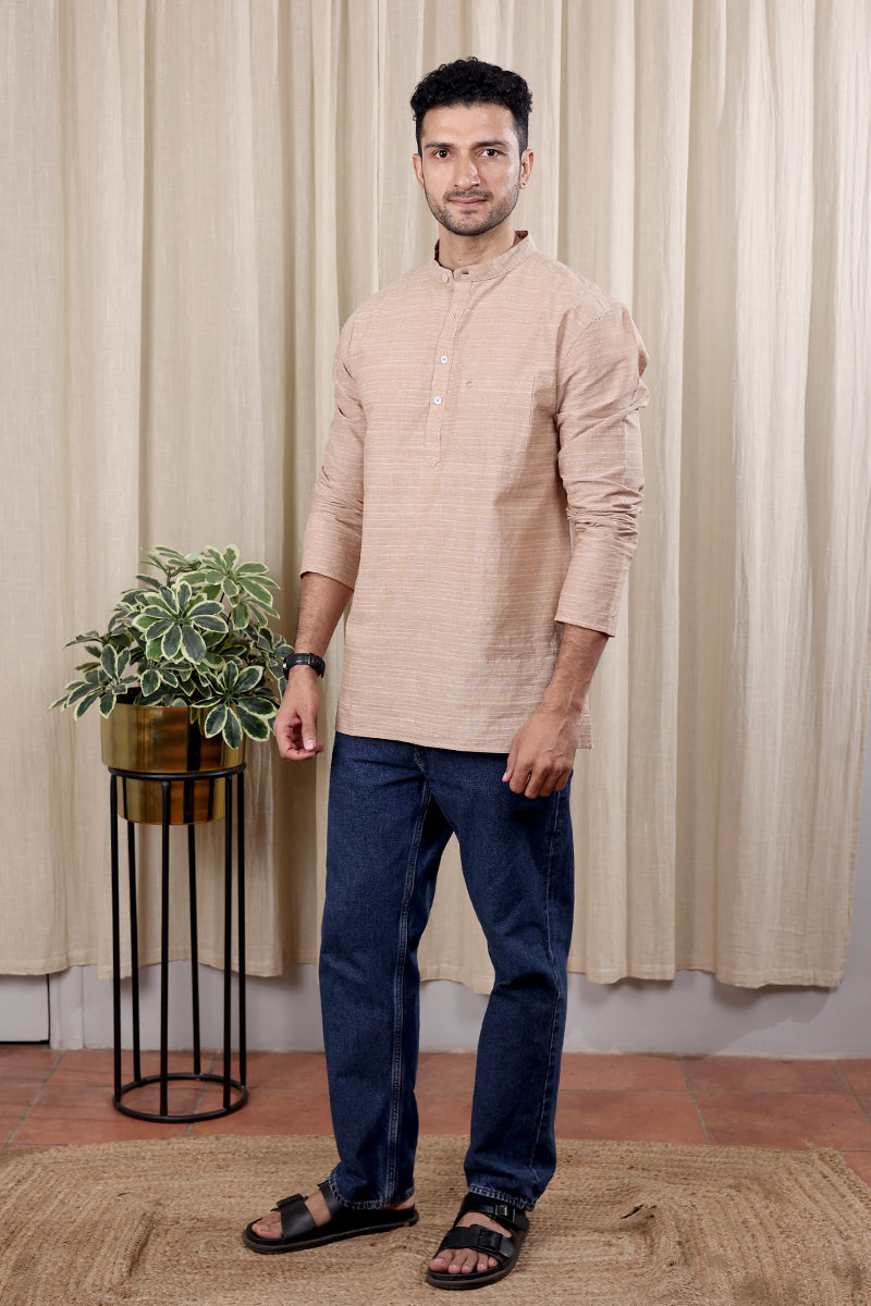 Light Brown Stripes South Cotton Men Short Kurta Full Sleeves MSKFS252C39