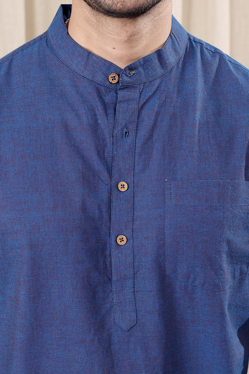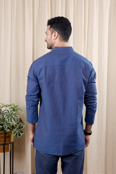 Violet Yarn Dyed South Cotton Men Short Kurta Full Sleeves MSKFS252C44