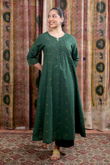 Palm Green Dobby Buti South Cotton Women Flared Pant WFLPT252C70