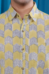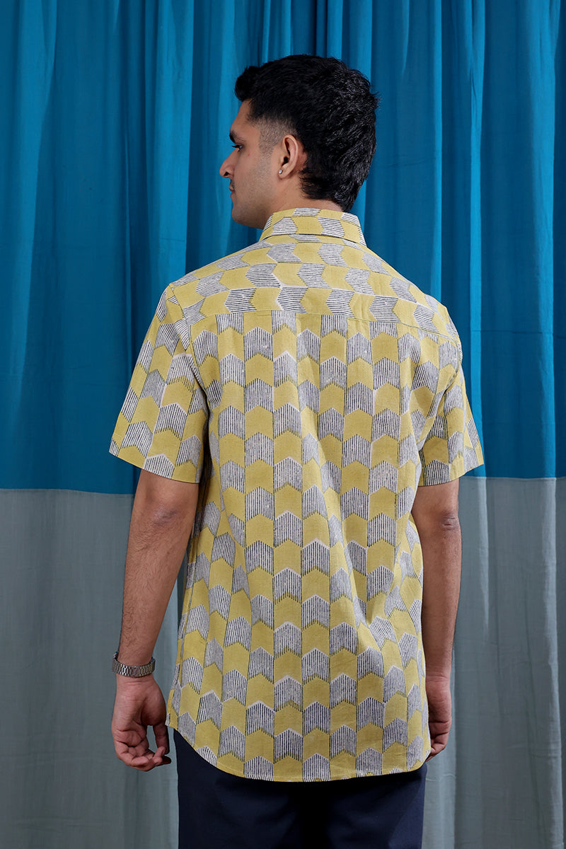 Mustard Sanganeri Natural Cotton Linen Men Shirt Half Sleeves MSHHS122515