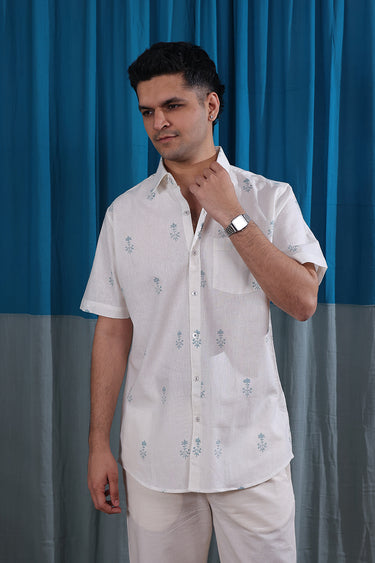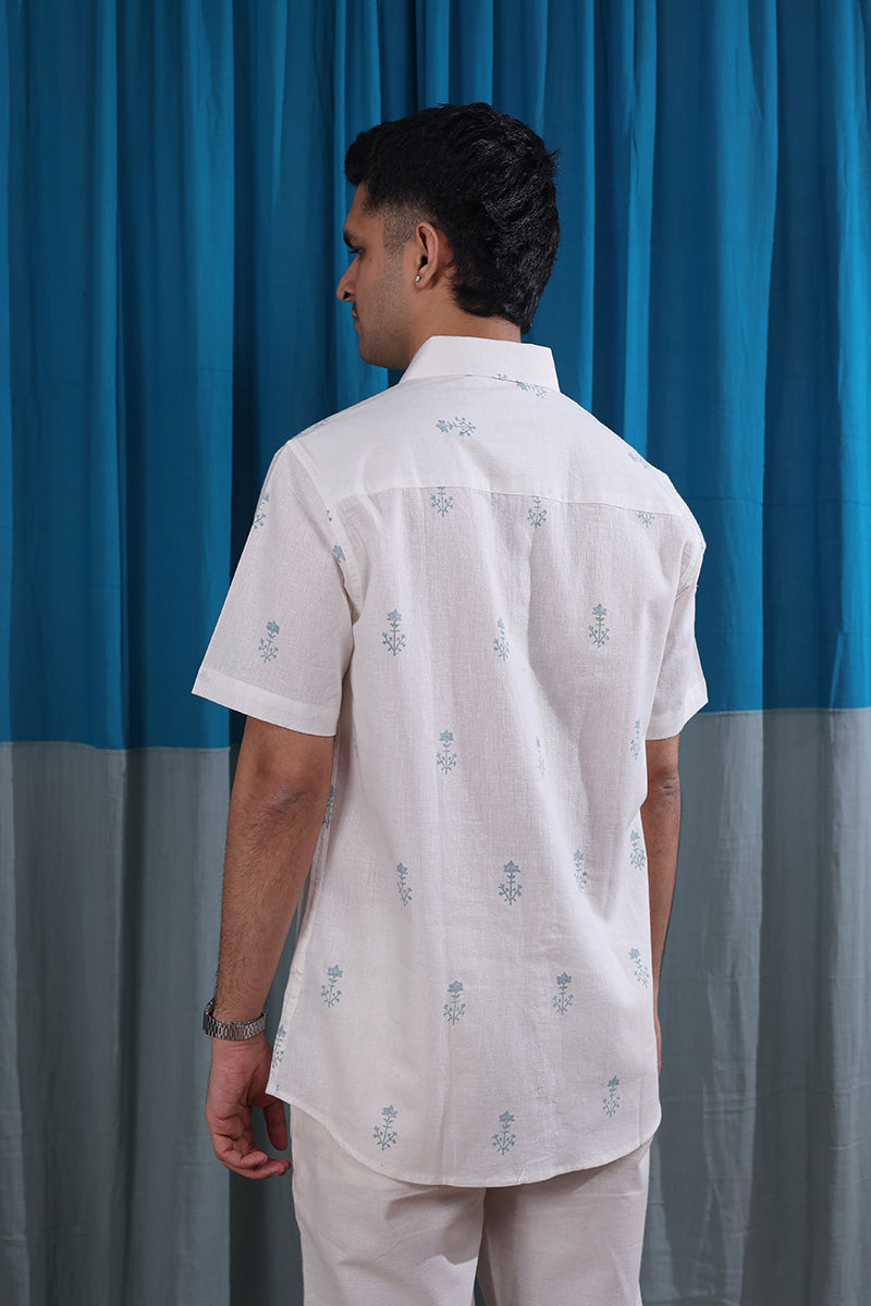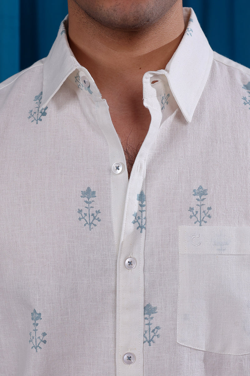 Steel Grey Sanganeri Natural Cotton Linen Men Shirt Half Sleeves MSHHS122513