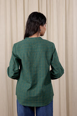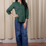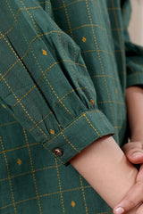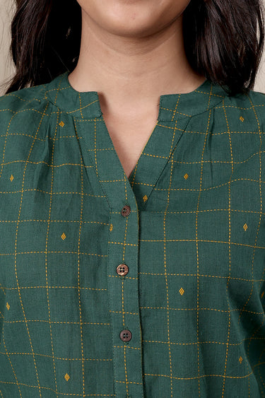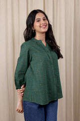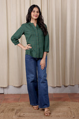 Dark Green Dobby South Cotton Women Short Top Long Sleeves WSTLS252C2