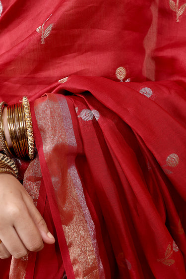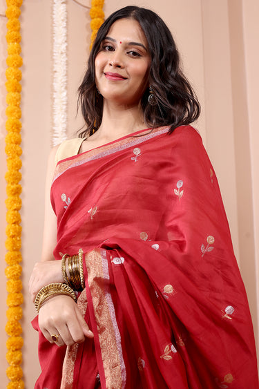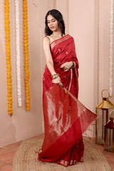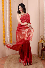 Deep Red Jaquard Banarasi Silk Saree SAREE252C14