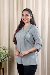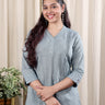 Grey Yarn Dyed South Cotton Women Kurti Long Sleeves WKILS252C76
