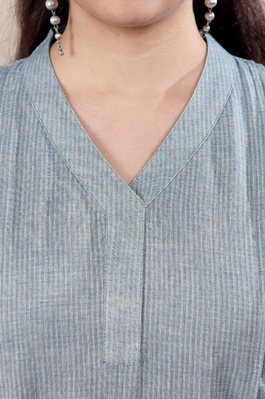 This yarn dyed kurti features a pintuck detailing and a comfortable, easy-to-wear fit. Ideal for work hours, casual outings, and slow weekend plans.