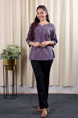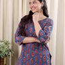 Indigo Dhabu Cotton Women Kurti Long Sleeves WKILS253C32