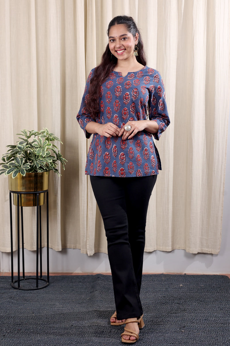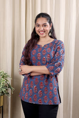 This Dhabu handblock printed kurti is soft, breathable, and crafted for generous comfort—perfect for all-day wear. Crafted to complement any bottom of your choice.