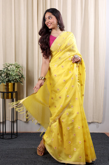 Bright Yellow Mina Buta Banarasi Silk Saree SAREE252C89