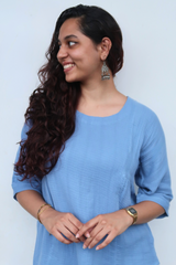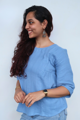 Powder Blue Hand Dyed Cotton Double Cloth Women Short Top Long Sleeves WSTLS252C8
