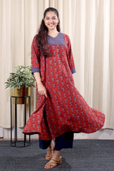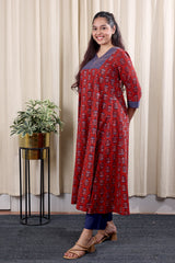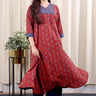 Rust Hand Embroidery Dhabu Cotton Women Ankle Kurta Long Sleeves WAKLS252C43