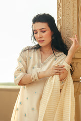 Beige Mina Butta Banarasi Silk Women Long Kurta Long Sleeves WLKLS252C106