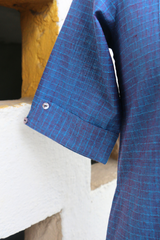 Blue Checks South Cotton Women Long Kurta Long Sleeves WLKLS062430