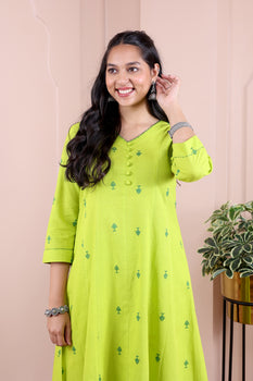 Green Dobby South Cotton Women Ankle Kurta Long Sleeves WAKLS09242