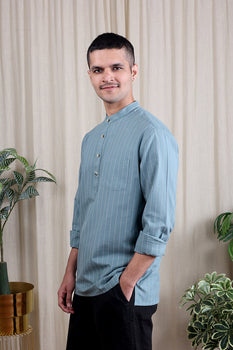 Stripes South Cotton Men Short Kurta Siblings