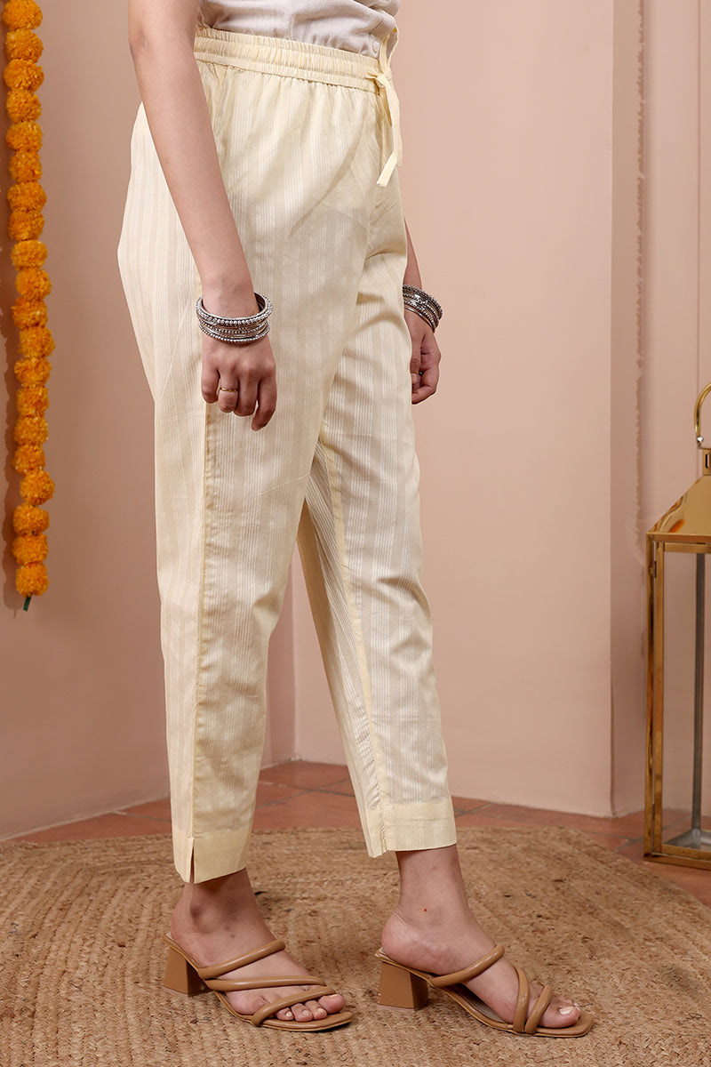 Cream Hand Dyed Dobby Stripe Women Ankle Pant WAKPT252C23