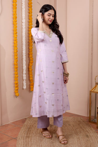 Lilac Hand Dyed Cotton Satin Women Flared Pant WFLPT252C42