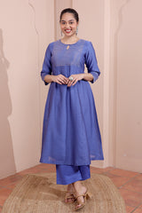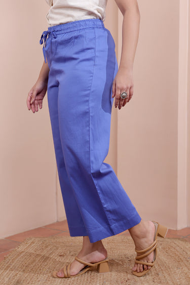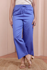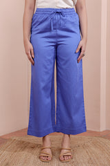 Midnight Blue Hand Dyed Cotton Satin Women Flared Pant WFLPT252C52