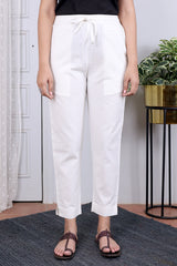 Off White Hand Dyed Cotton Flax Women Ankle Pant WAKPT252C30