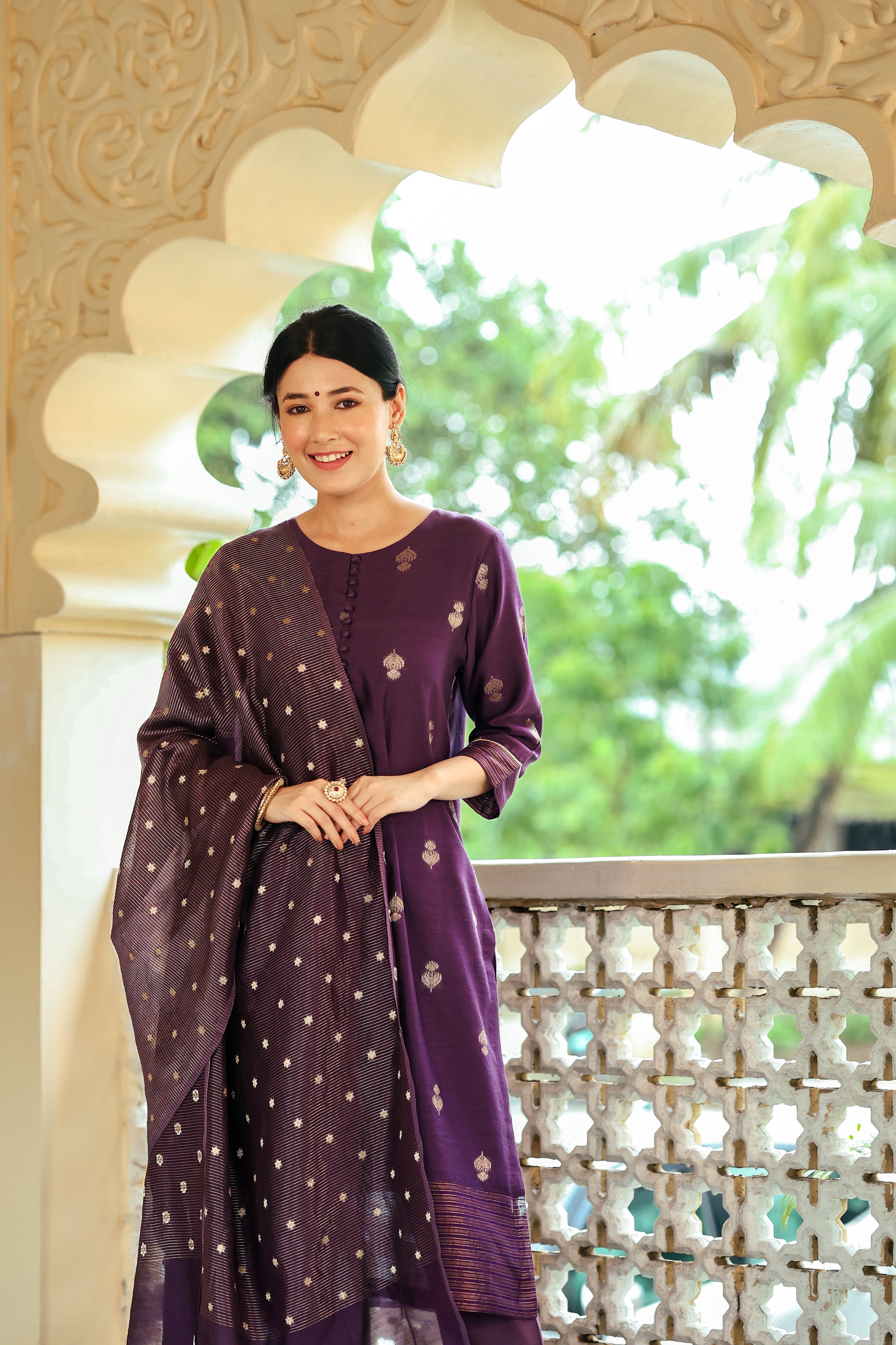 Dark Purple Jaquard Buta Banarasi Silk Women Long Kurta WLKLS252C151
