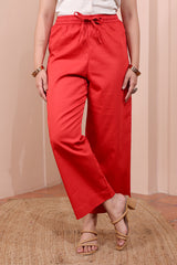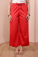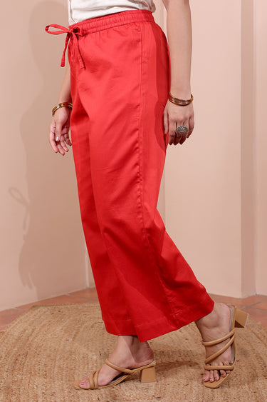 Red Hand Dyed Cotton Satin Women Flared Pant WFLPT252C90