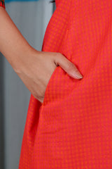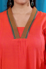 Coral Red Temple Border South Cotton Women Long Kurta Long Sleeves WLKLS122514