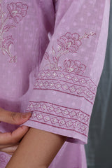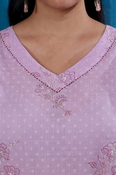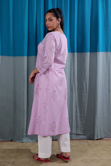 Lilac Sanganeri Cotton Dobby Women Long Kurta Long Sleeves WLKLS253C94