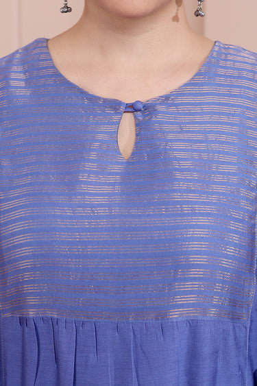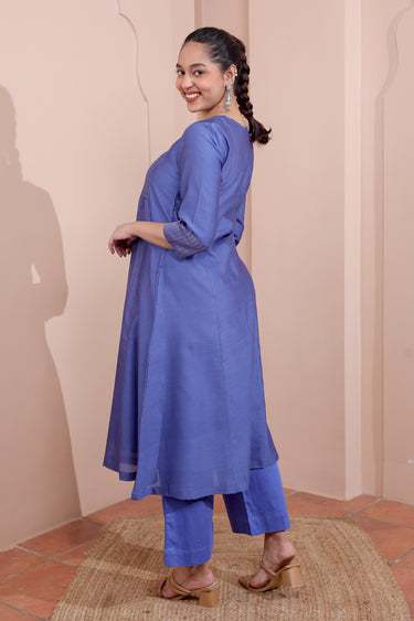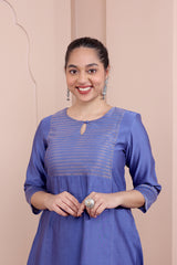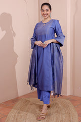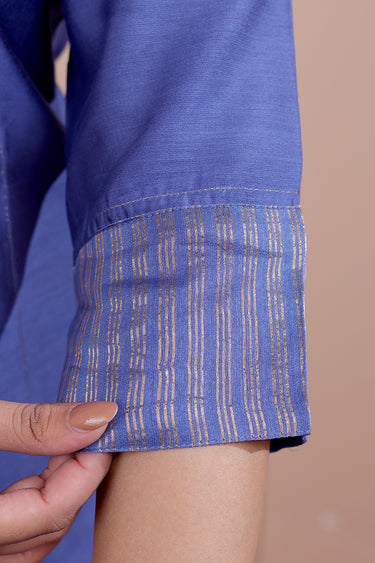 Midnight Blue Hand Dyed Chanderi Silk Women Long Kurta Long Sleeves WLKLS252C187