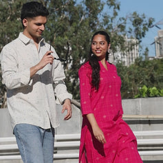 Coral Sanganeri Natural Cotton Linen Men Short Kurta