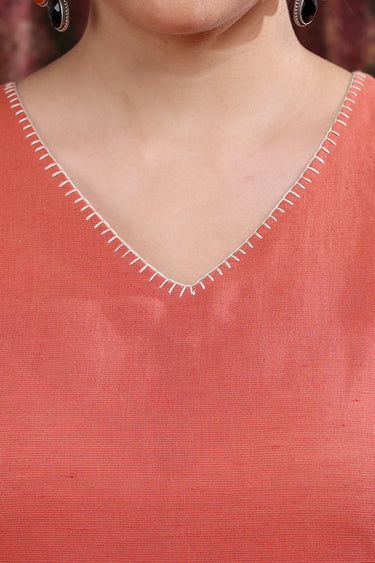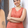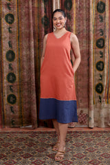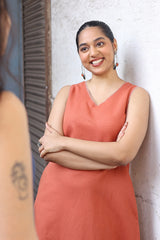 Brick Red Hand Dyed Cotton Linen Women Midi Dress Sleeveless WDRSL253C9