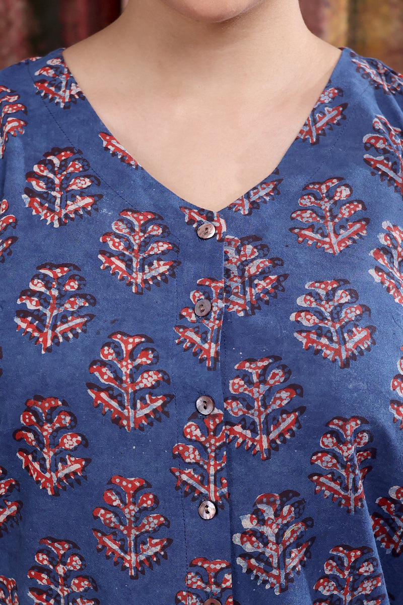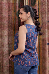 Indigo Dhabu Cotton Women Short Top Sleeveless WSTSL253C16