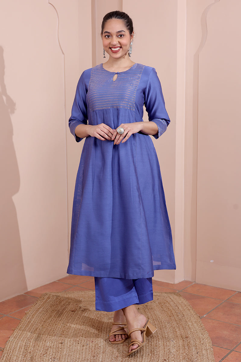 Midnight Blue Hand Dyed Chanderi Silk Women Long Kurta Long Sleeves WLKLS252C187