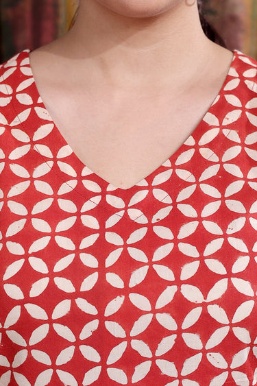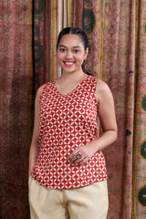 Red Bagru Cotton Malmal Women Short Top Sleeveless WSTSL253C74