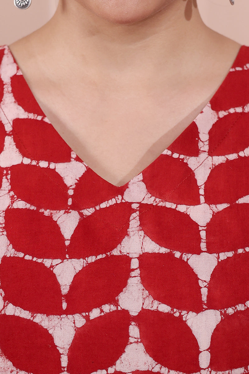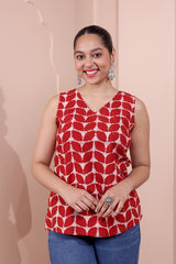 Rust Dhabu Cotton Women Short Top Sleeveless WSTSL253C79