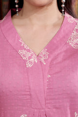 Wine Sanganeri Cotton Dobby Women Long Kurta Long Sleeves WLKLS253C60