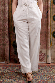 Sand Beige Hand Dyed Rayon Flax Women Wide Leg Pant WWLPT252C4