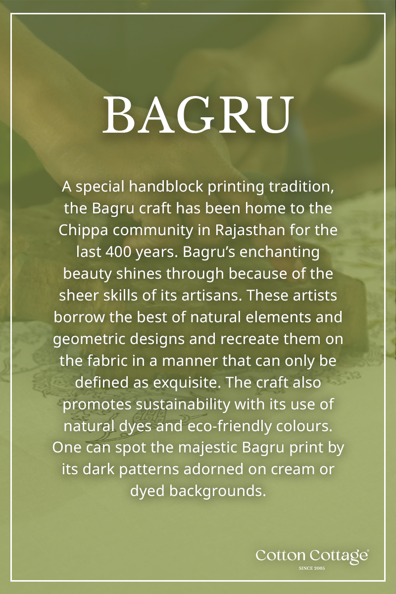 With its intricate bagru prints, piping detailing and a unique wrap-around style, our skirt offers a fun and easygoing look.
