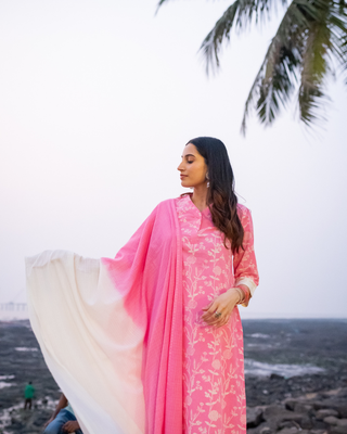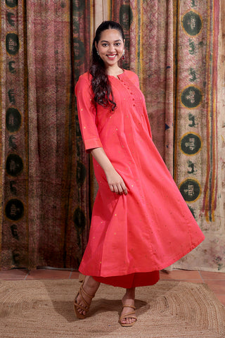 Rose Pink Sanganeri Cotton Dobby Women Long Kurta