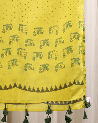 Bright Yellow Sanganeri Natural Cotton Linen Women Midi Dress